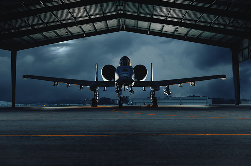 MD ANG 175th Wing A-10 Warthog stands guard at Warfield ANGB under stormy skies. Aircraft serial 79-0165